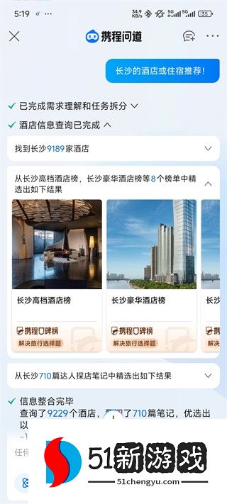2、你可以在这里问一些问题,比如长沙的酒店或住宿推荐,系统会根据大数据智能推荐。