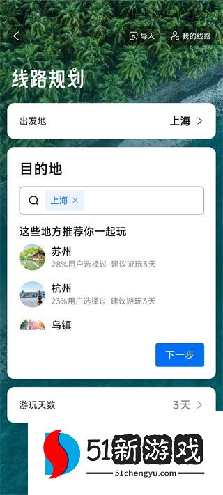 5、选择目的地和游玩天数。