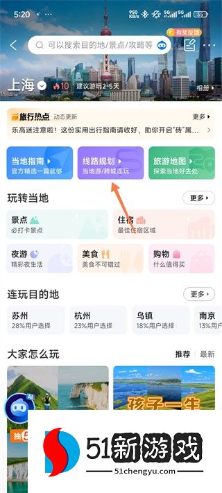 3、如果你想出去走一条路线,你可以点击“指南/景点”部分。