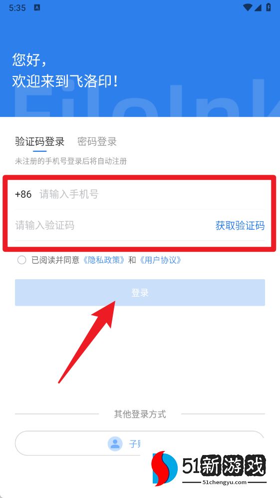 2、在登录页面输入手机号并获取验证码,完成登录即可进入应用。