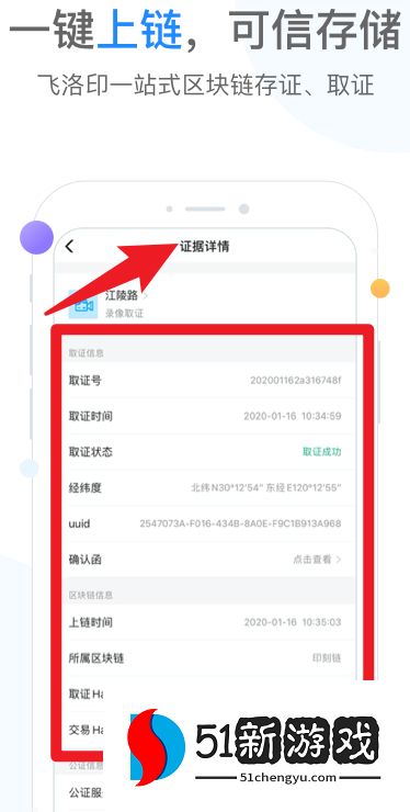 4、在“证据详情”页面,可查看取证号、取证时间、存证状态、上链时间、取证Hash等完整信息。