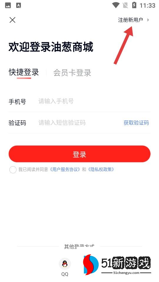 2、在登录界面点击【注册新用户】,进入注册页面。