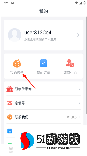 2、点击屏幕左侧的“我的孩子”。