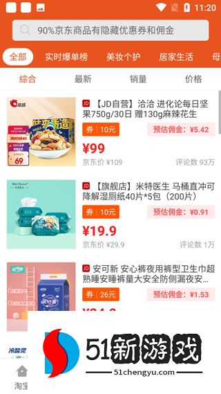 2、月销量超过1万件的热门产品,均可在此领取优惠券。