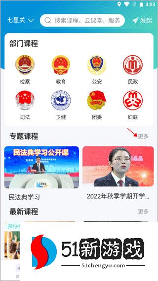 1、打开软件并登录账号,选择【云课堂】这个模块,点击专题课程旁边的“更多”。