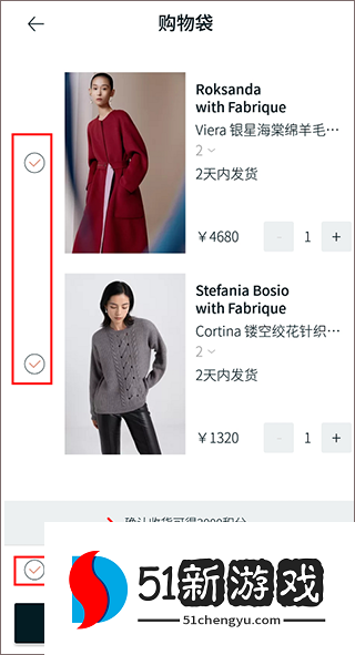 3、商品选择完成后,点击进入【购物袋】页面,选中需要购买的商品,点击【去结算】。