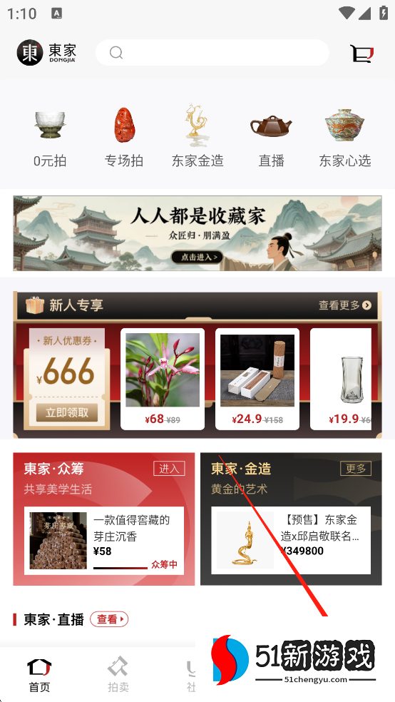 东家app是一款主打匠人手工艺术品的拍卖平台。涵盖茶叶、茶具、首饰、文娱用品、家居用品、食品、服装等。每一款产品都经过严格挑选,都有自己独特的特点。通过电商拍卖、产业聚合、工艺创新等形式,为用户带来具有浓郁东方美学色彩的丰富产品,致力于让传承成为潮流,让东方美学融入家庭生活。用户可以拍卖自己喜欢的手工艺品,也可以看到国际/国家/省级大师、一流青年工匠和新兴设计师的作品。