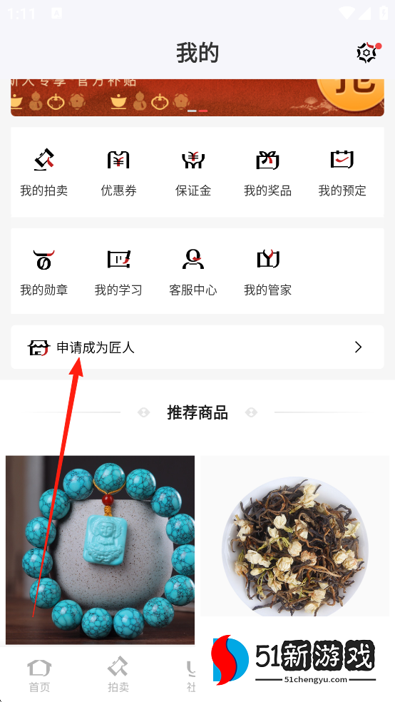 2、点击【申请成为匠人】。