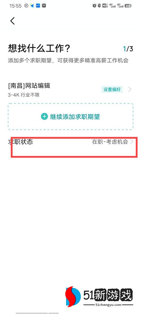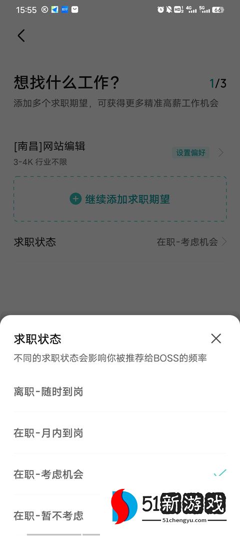3、我们选择在职,暂不考虑即可,当然你也可以直接隐藏自己的简历。