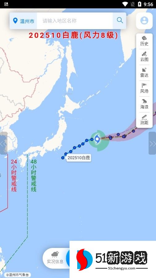 3、然后点击上面的小点,就可以查看台风的路线了。