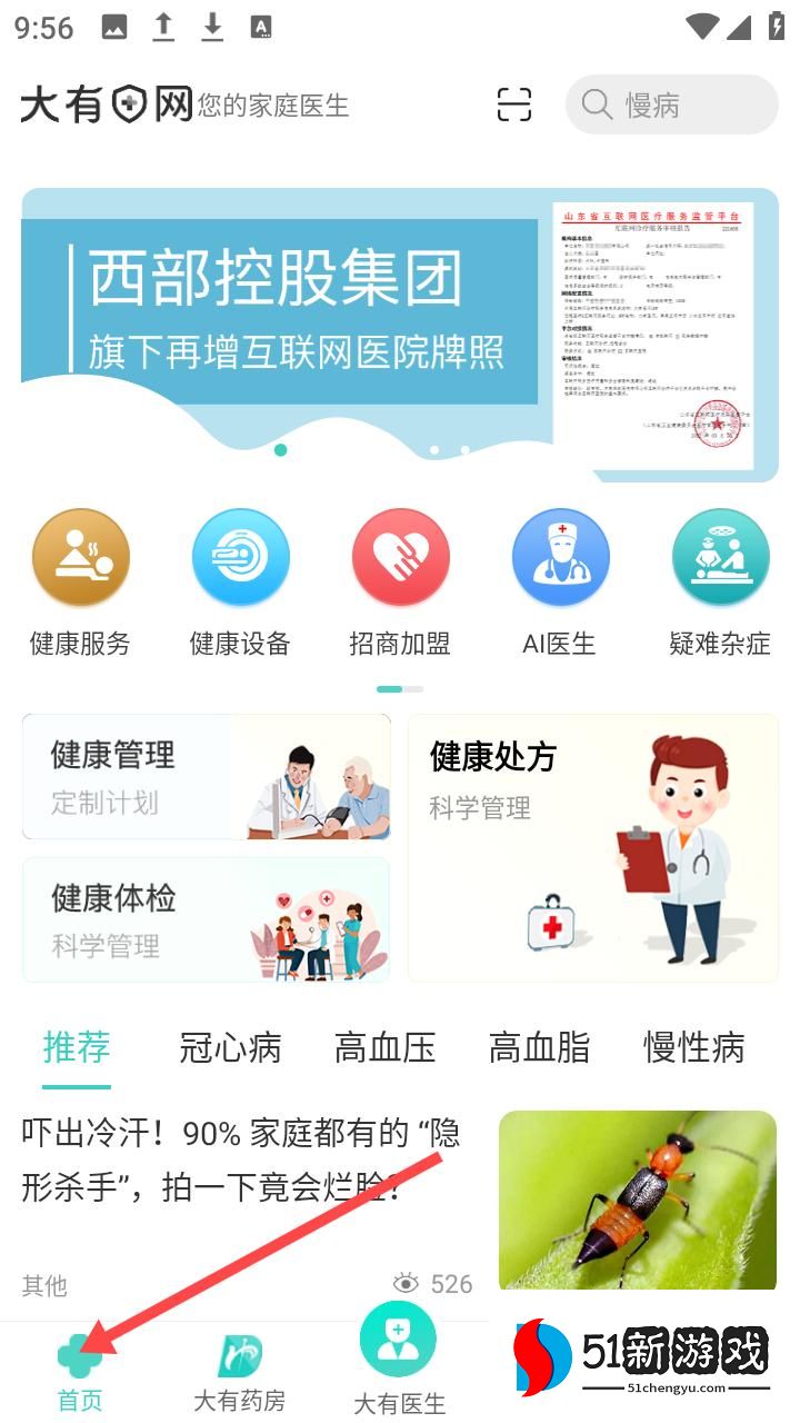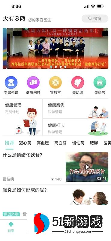 1、主页功能丰富。健康服务和人工智能医生的切入点很突出,也有健康管理和体检模块。下面推送冠心病、慢性病等信息,方便用户获取医疗服务和知识。