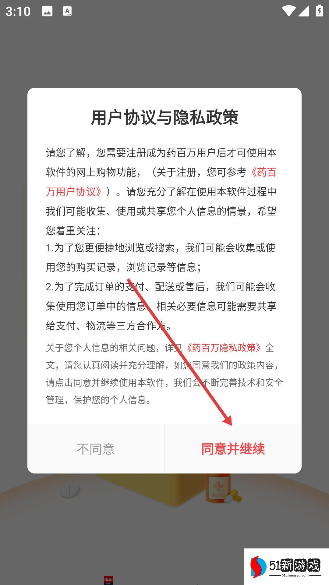 1、下载安装完成后,您需要在用户协议和隐私政策界面点击“同意”。只有在接受相关条款后,您才能进入申请。