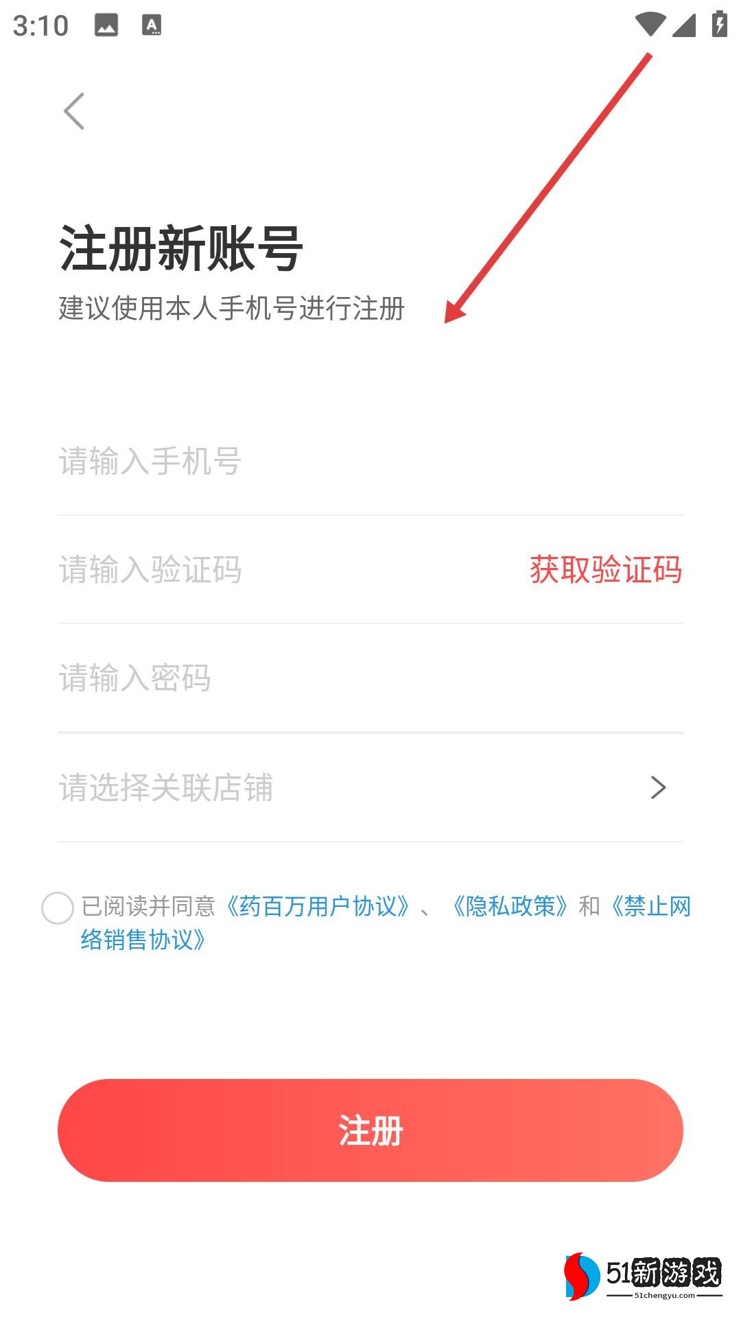 3、在注册新账户界面,根据提示输入手机号、验证码和密码。选择关联的店铺,勾选同意相关协议的复选框,然后点击注册按钮完成注册。