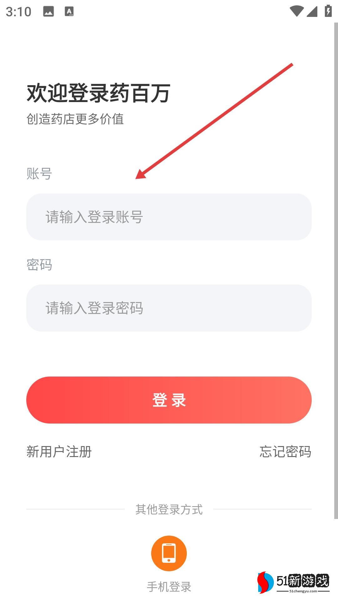 2、进入登录界面。您可以选择通过输入账号和密码登录,也可以选择通过手机登录。如果你没有账户,你也可以点击“新用户注册”来注册一个账户。