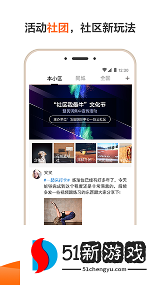 4、进入社区区,查看小区各种动态信息,在线分享生活动态,培养健康生活习惯。