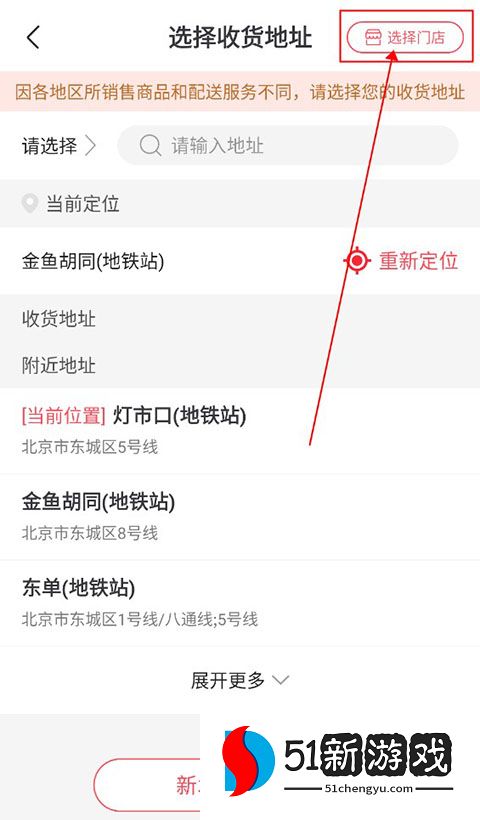 修改完地址后用户需要在地址页面,点击右上角的“选择门店”,选择一个离自己最近的门店进行购物。