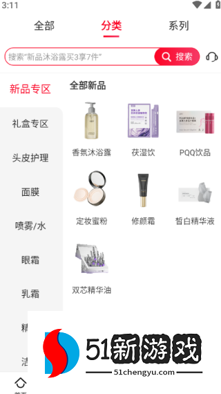 2、商品进行了全面细致的分类,方便用户在线找到适合自己肌肤的产品。