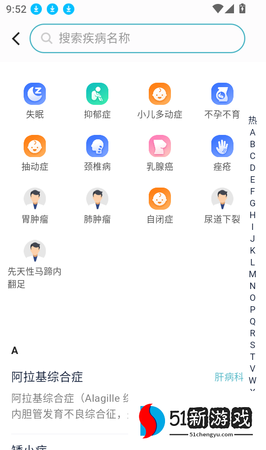 3、之后,您可以在界面中查看常见疾病,点击“疾病”按钮进入下一步。