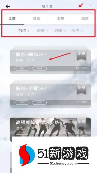 5、根据你的健身目标筛选课程标签。点击任何课程卡查看详细信息并开始您的培训计划。