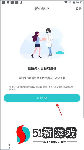 2、首先,请医务人员收集设备。拿到设备后,扫描设备上的二维码,点击“立即扫描”即可。