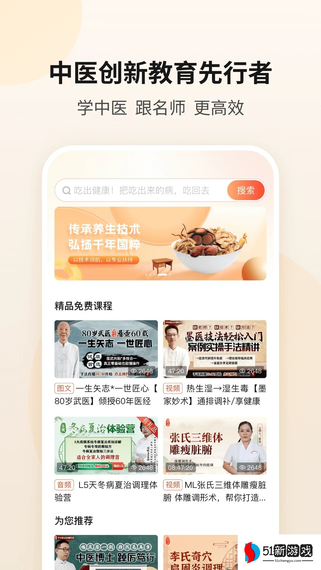 御珍堂是一款全新的健康养生医疗软件,可以为用户提供丰富的中医养生课程,还能全面推荐丰富的养生课程资源,随时随地自由学习各种养生知识,还保证各类中医养生课程的教学质量,让用户在这里放心购买和学习课程,能完全满足所有使用需求,还会及时各种中药养生知识储备,方便用户轻松掌握,自由享受优质的学习服务,还可以自由选择自己需要购买的产品,保证各种产品的质量,让用户放心购买各种优质的保健品。