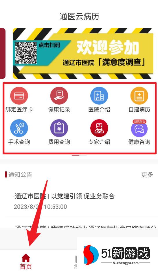 2、在首页界面,用户可以点击按钮绑定医疗卡功能,快速进入相应的医疗卫生服务页面,从而实现便捷的在线信息查询。