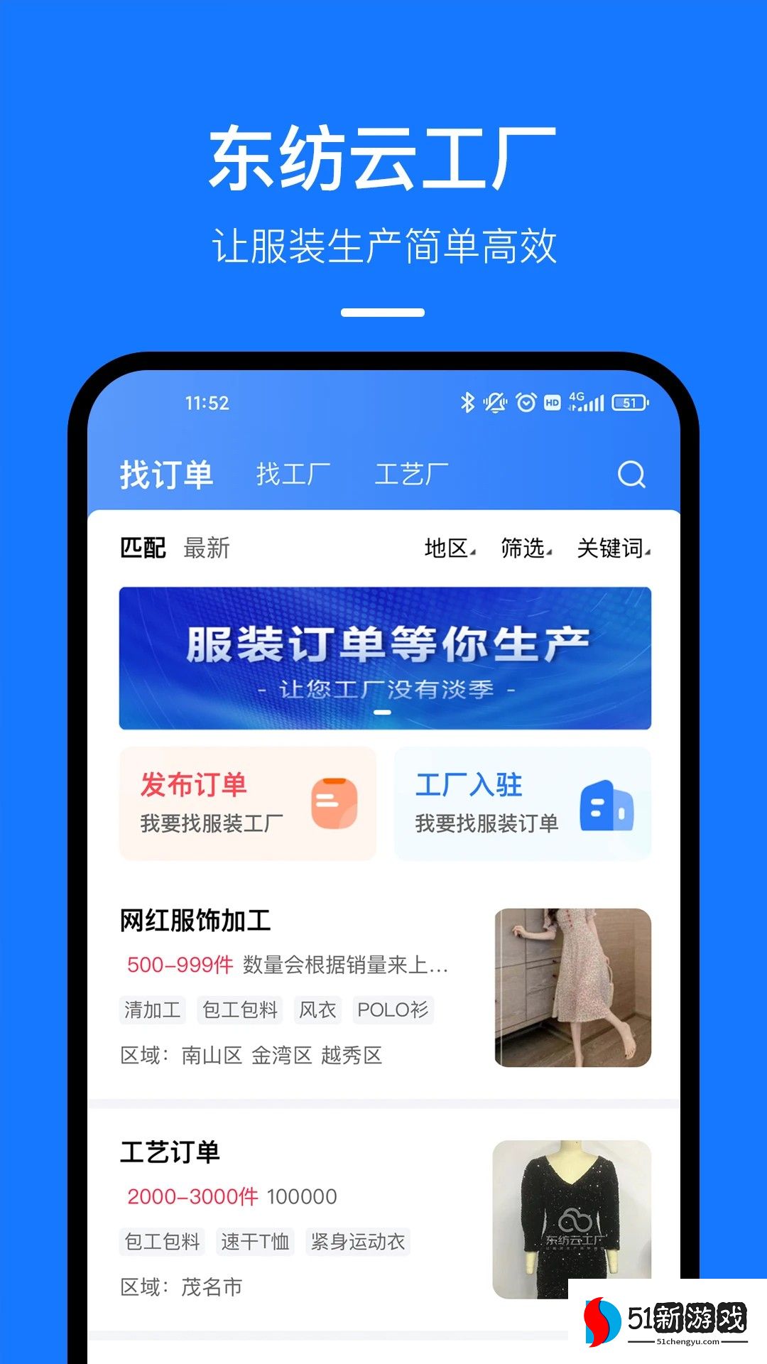 东纺云工厂是一款非常实用的工厂接单软件,拥有全新的功能选项,用户可以自由进入首页中搜索查找各种服装工厂和订单信息,随时随地轻松浏览查看,还能在网上发布自己的服装需求并直接与加工厂沟通,轻松享受优质的服务,还可以高效处理订单,轻松实现快速匹配和交易,能完全满足所有使用需求,还结合丰富的行业信息和市场趋势,用户可以及时获取最新的面料和产品信息,方便更明智的购买决策,有兴趣的用户欢迎下载软件。