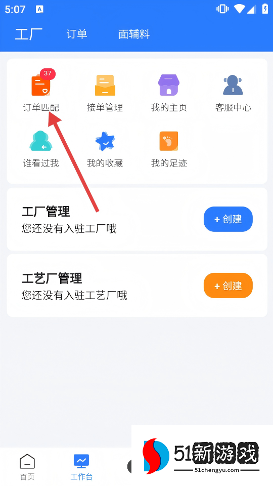 1、在主页上,单击底部导航栏中的[工作台]按钮,进入工作台页面。