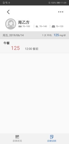3、它还可以定期输入关键的健康指标数据,如血压和血糖,应用程序将生成报告。
