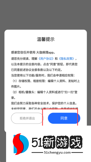 1、首次启动时,请仔细阅读并确认用户协议和隐私政策。点击同意按钮,进入医疗专业应用主界面。