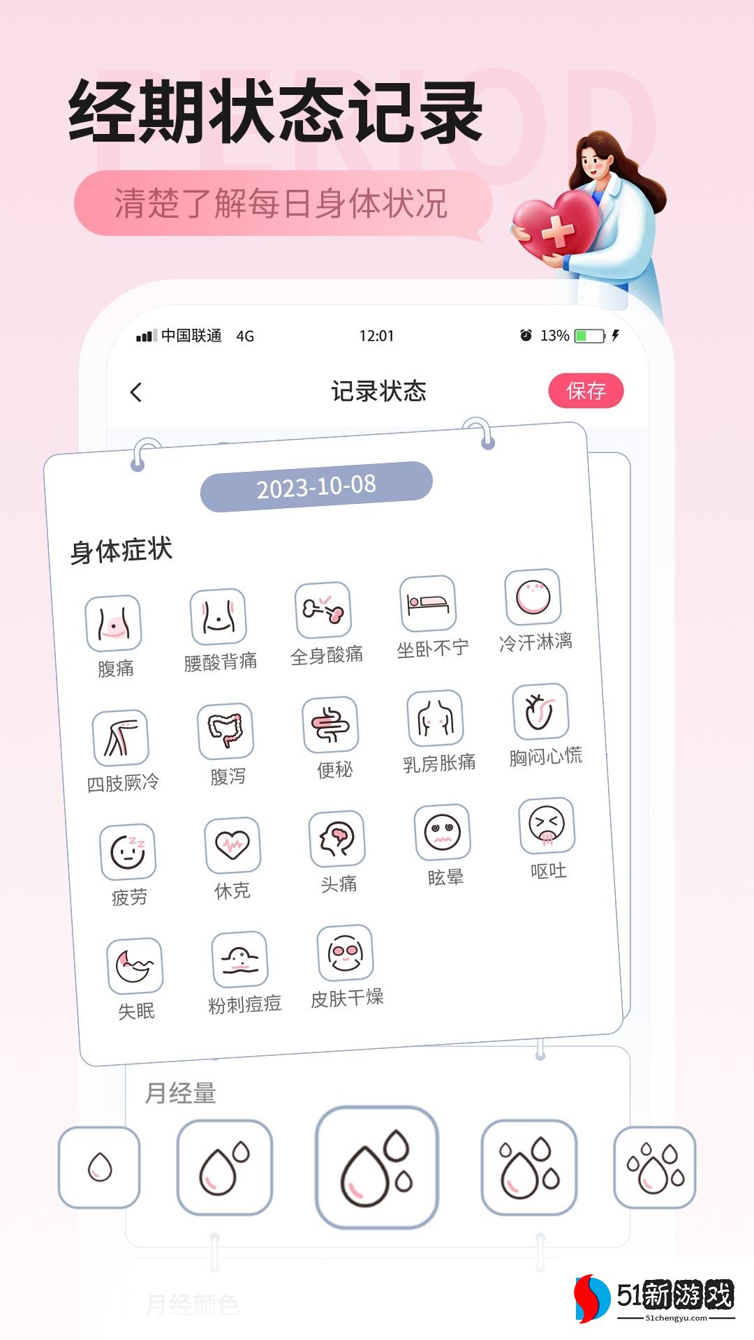 2、记录功能:支持详细记录月经周期、出血量、排卵状态等数据,为用户提供全面的生理周期管理。