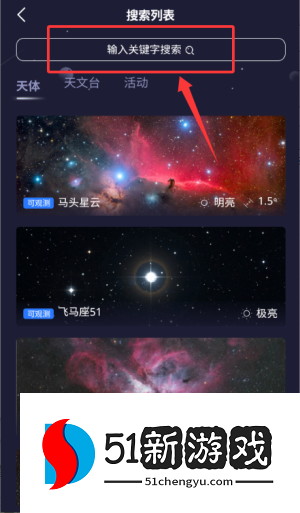 1、界面设计:界面简洁明了,以星空为主题,完美契合软件功能。用户可以通过简单的操作轻松浏览和了解各种天体的信息。