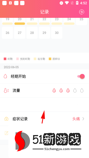4、在日历中,用户记录的信息将以简单明了的方式呈现,以便更容易了解他们最近的身体健康状况。