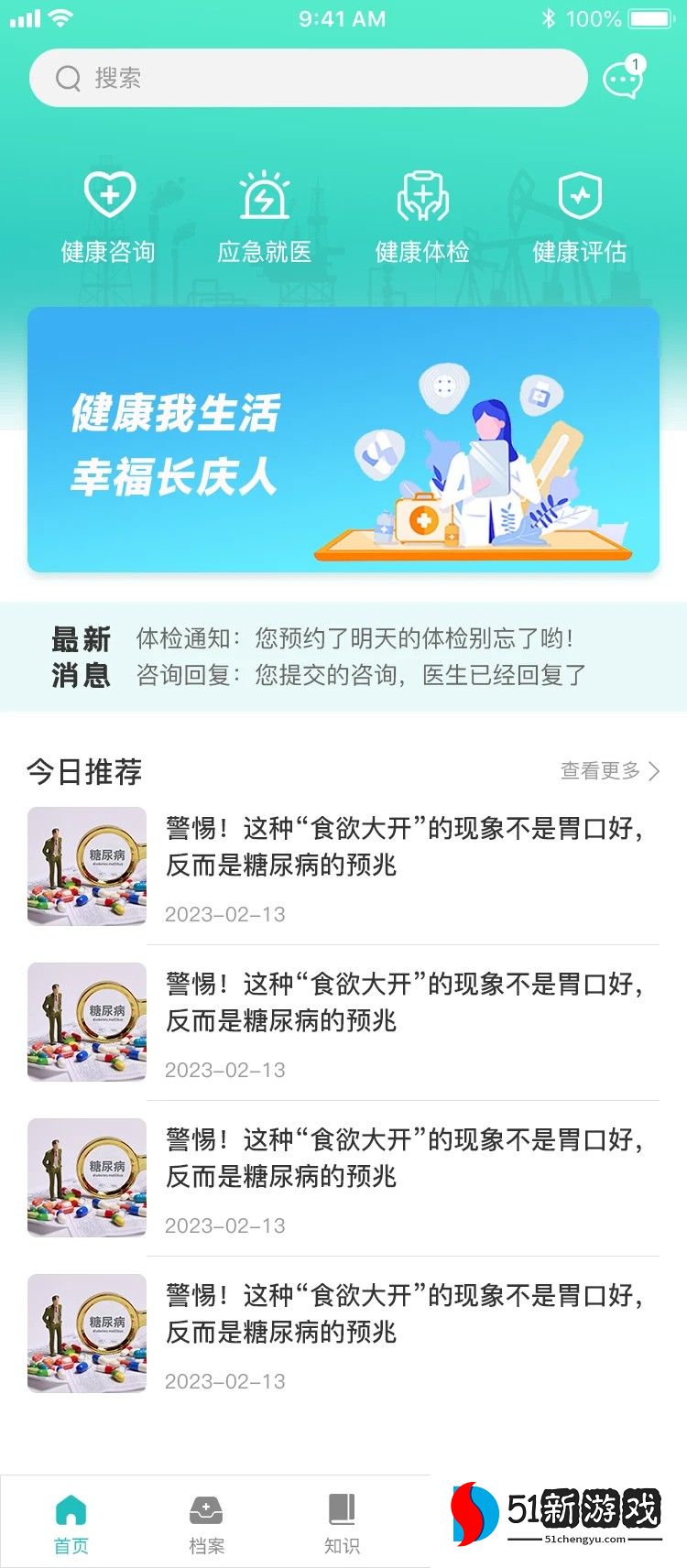 健康长庆是一款非常热门的健康资讯软件,拥有在线咨询问诊功能,允许用户自由选择医生来进行就诊咨询,轻松了解全面的健康状况,还具有个性化的界面设计, 用户可以轻松查看各种健康养生知识,自由掌握全面的健康新闻资讯,能完全满足所有使用需求,还提供紧急医疗服务和便捷的紧急医疗渠道,使用户能够在最短的时间内接受治疗,提高患者治疗的效率,自由享受便携的医疗就诊服务,有兴趣的用户欢迎来本站下载软件。