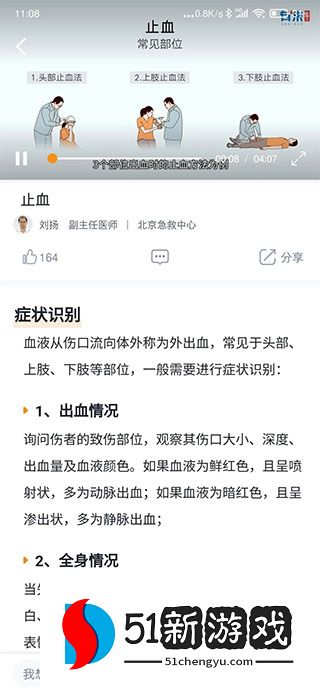 3、例如,下面的“止血”非常详细。当你遇到特殊情况,不知道该怎么办时,你可以打开这个应用程序查看解决方案。