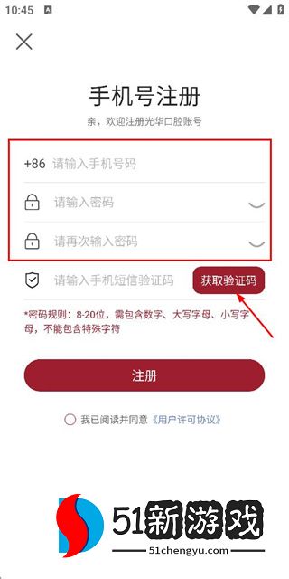 2、在帐户注册页面上输入您的电话号码和密码后,单击“获取验证码”按钮。