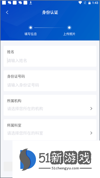 2、输入您的身份证信息和医院信息,然后单击下一步。
