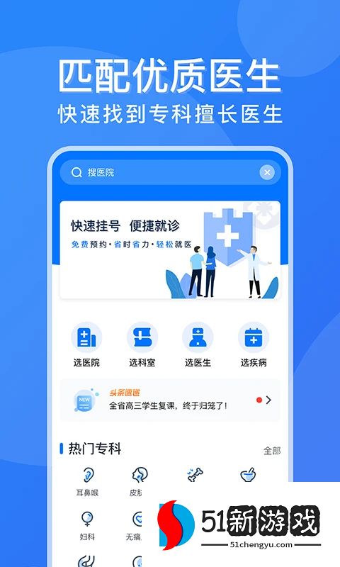 广州挂号网是一款非常实用的挂号就诊软件,拥有全新的界面设计,允许用户自由搜索查询全国各地的医院信息,随时随地轻松浏览各时间段的挂号信息,方便用户轻松咨询专业医生并解答各种医疗问题,还提供灵活的医疗登记服务,帮助每个人快速登记挂号记录,自由享受便携的医疗就诊体验,能完全满足所有使用需求, 还能及时更新许多流行的健康知识,方便用户自由浏览阅读,轻松关爱健康生活,有需要的用户欢迎下载软件。