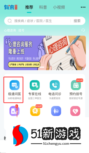 2、使用极速问医能快速提交健康咨询问题,系统将在三分钟内为在线医生匹配实时答案。