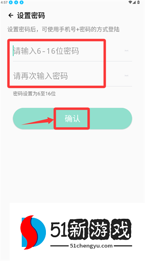 3、转至密码设定页设置密码,点击确认即可完成。