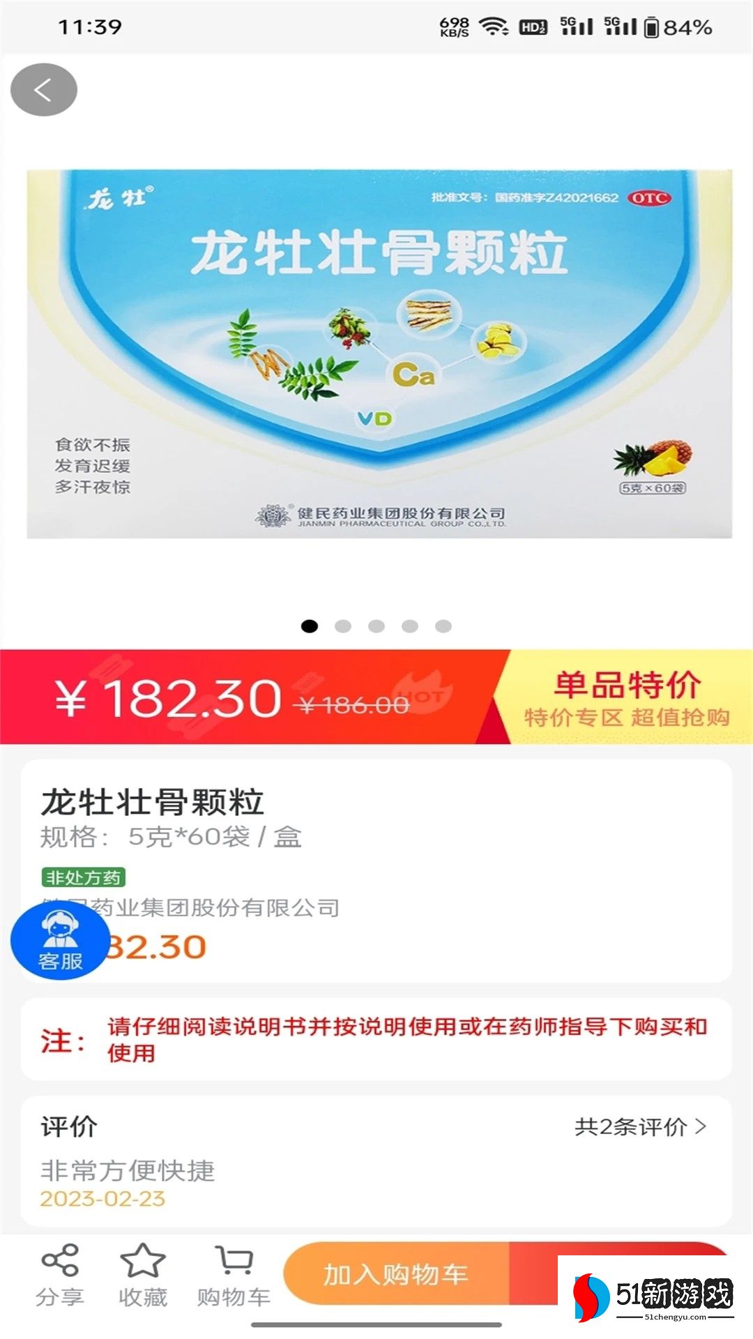 6、点击详情页面底部的“加入购物车”按钮,药物将自动加入购物车,您可以继续浏览其他产品。