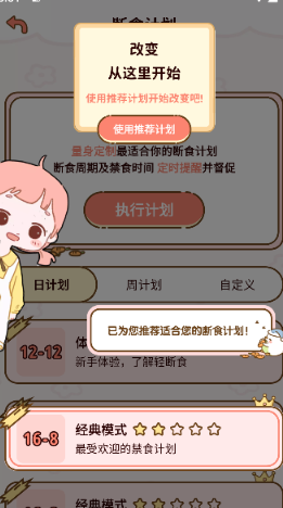 2、多种禁食计划:提供多种禁食计划供用户选择,如16-8、14-10等,以满足不同用户的减肥需求。