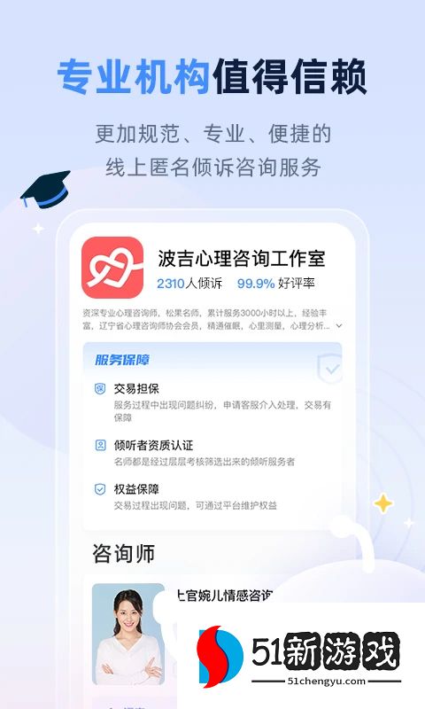 1、隐私保护:本软件重视用户隐私,所有咨询内容均受到严格保护。用户可以放心寻求心理咨询。
