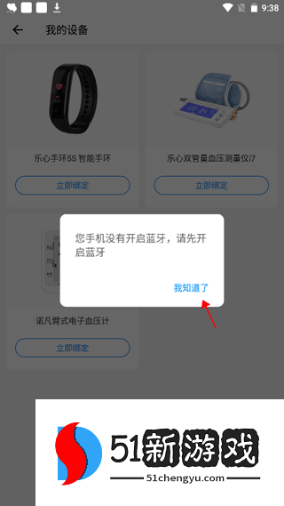 4、此时,将弹出一个提示,要求打开蓝牙。打开蓝牙并匹配附近的设备后,您可以继续绑定。