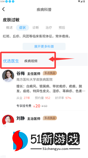 1、在主页上选择皮肤过敏类别,进入科普医生列表页面。