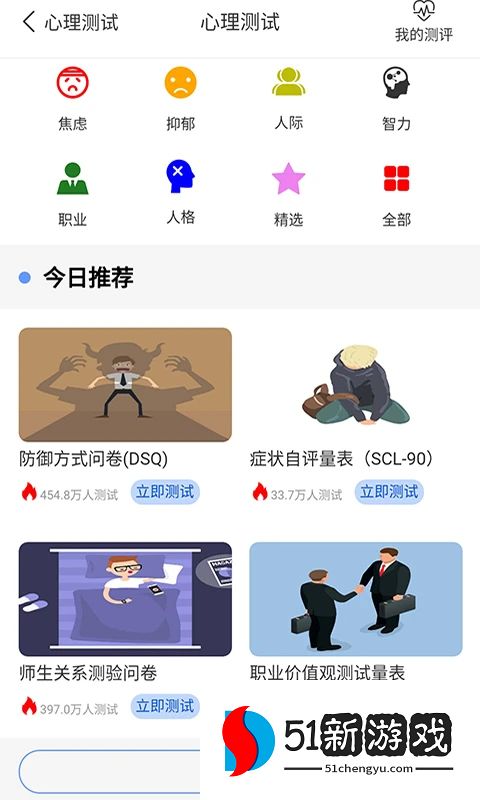 1、下载软件后用户就能够使用软件来进行心理测评,通过问卷即可进行测评;