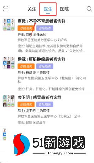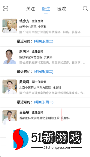 3、按科室或疾病类型搜索医生资源,查看专业资格和患者评价。