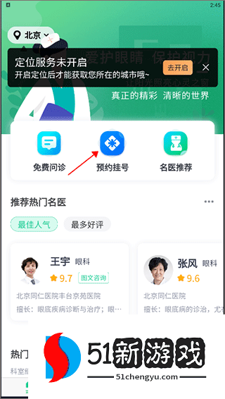 1、打开眼科医院挂号网应用程序进入主页,登录应用程序并选择预约注册。