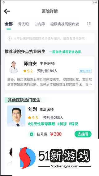 3、进入医院页面后,根据疾病类型选择相关医生进行登记。