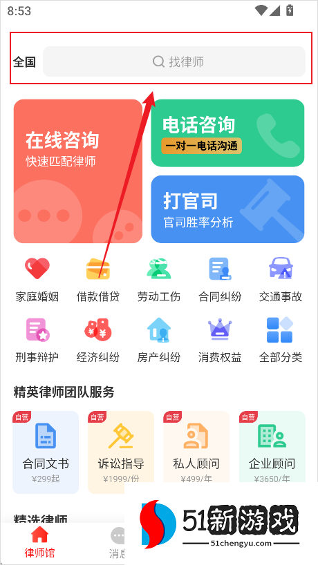 律师馆法律咨询是一款专业的免费法律咨询软件,拥有多样化的法律咨询服务,包括婚姻、劳动、交通等各种法律问题,随时随地在线咨询专业律师得到帮助和解答,能完全满足所有使用需求,还提供即时咨询、律师函、诉讼代理等多元化服务,方便用户轻松了解各种知名律师和律师事务所,还具有个性化的界面设计,可以帮助用户快速找到当地专业律师,节省时间并获得本地化的法律支持,有兴趣的用户欢迎来本站下载软件。
